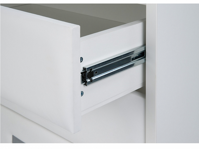 Կոմոդի շրջանակը պատրաստված է բարձրորակ տախտակից։ Գզրոցների ճակատային մասը պատված է պաստառագործության նյութով՝ շքեղ էկո կաշի։ Այս նյութը հեշտ է օգտագործել և դիմացկուն է: Կարող եք վստահ լինել, որ այն երկար տարիներ կծառայի ձեզ։ Կոմոդը առաքվում է չհավաքված։ Բոլոր անհրաժեշտ կցամասերը և ամրակները ներառված են։