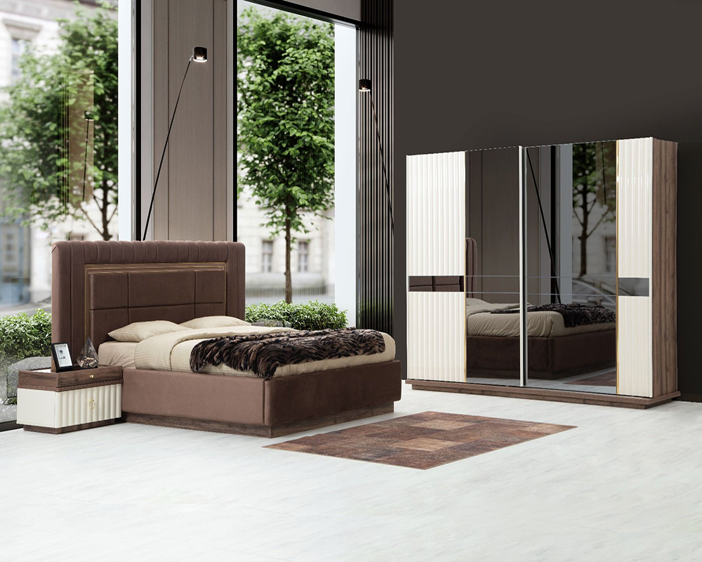Հավաքածուն ներառում է՝ մահճակալ-պահոցով, թավշյա, ՄԴՖ և ԼԴՍՊ, չափս-2320*2200*1400, զգեստապահարան սլայդ դռներ-ՄԴՖ և ԼԴՍՊ, չափսը՝ 2540*740*2200, կոմոդ՝ 1400*500*1180, տումբա՝ 650*480*440