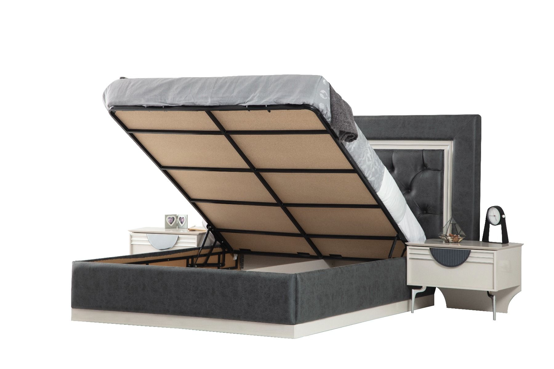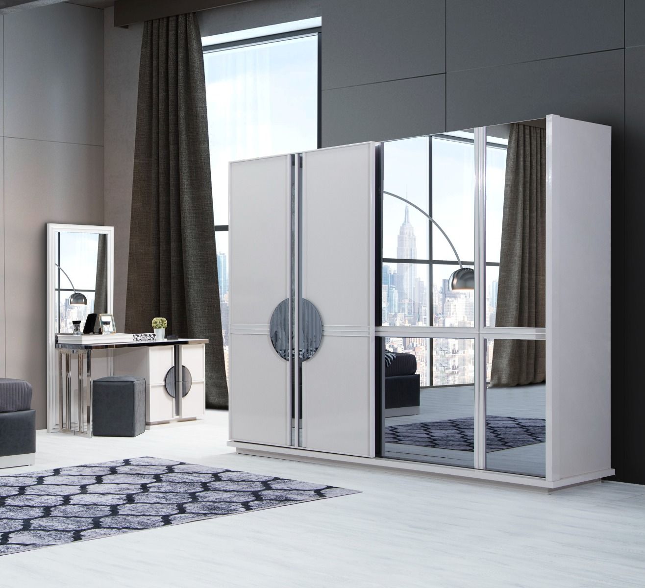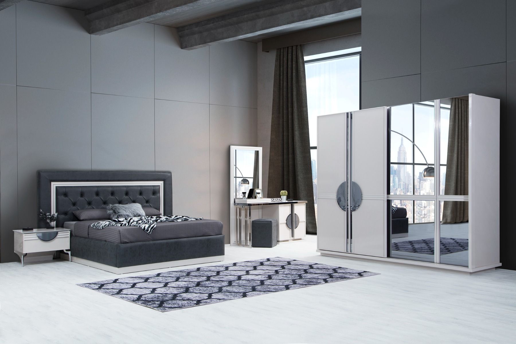 Հավաքածուն ներառում է՝ մահճակալ-պահոցով, էկոկաշի, ՄԴՖ և ԼԴՍՊ, չափս-2300*2160*1400, զգեստապահարան սլայդ դռներ-ՄԴՖ և ԼԴՍՊ, չափսը՝ 2550*720*2180, կոմոդ՝ 1500*540*1840, տումբա՝ 670*490*490