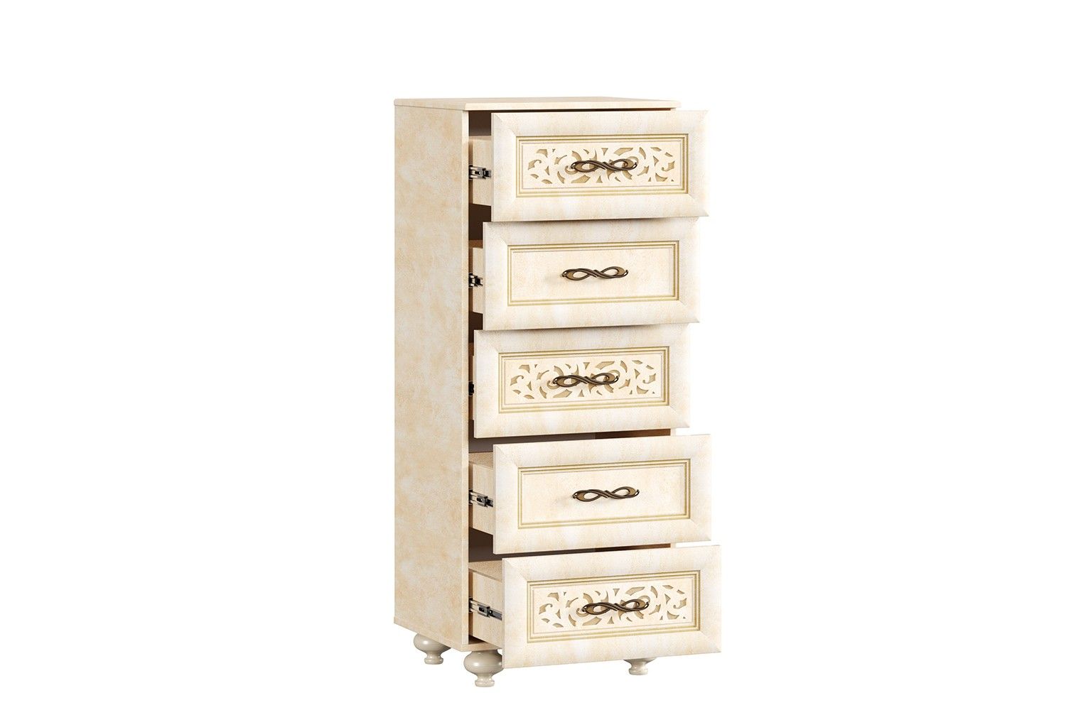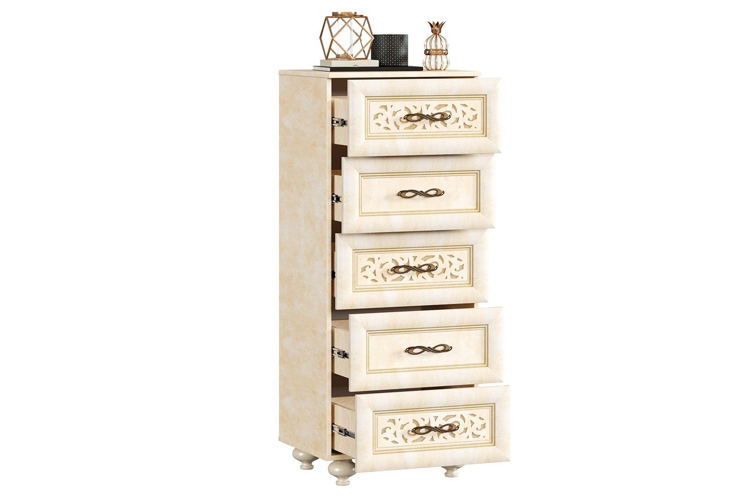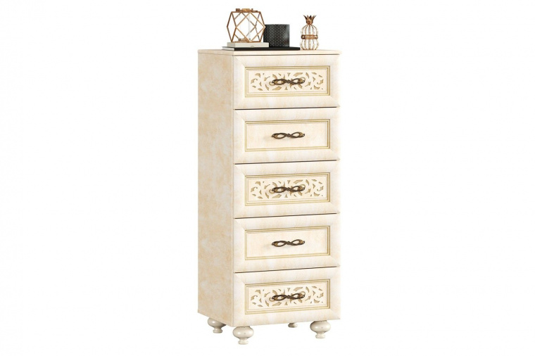 • 5 выкатных ящиков на шариковых направляющих. • Максимальная нагрузка на выкатной ящик – 5 кг. • После сборки рекомендуется прикрепить комод к стене с помощью угловой подвески*. • Крепеж к стене приобретается дополнительно